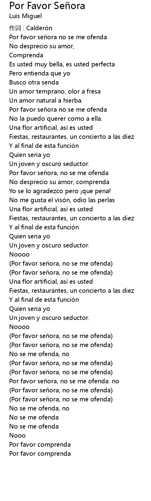 | Por favor señora, no se me ofenda. no | |