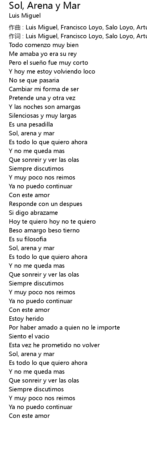 | 作词 : Luis Miguel, Francisco Loyo, Salo Loyo, Arturo Pérez | |