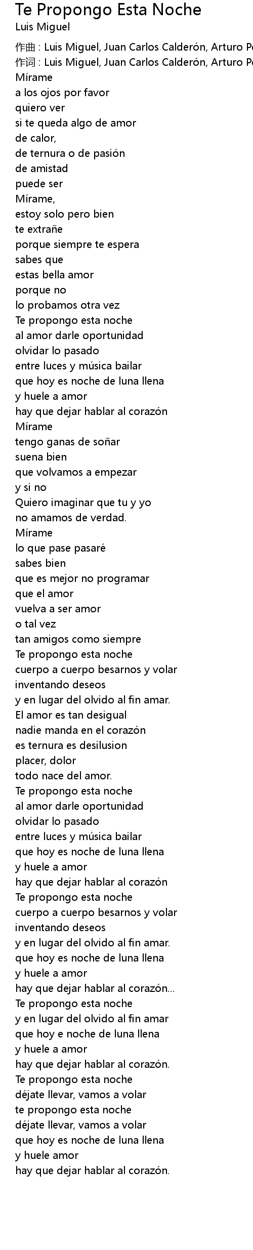 | 作曲 : Luis Miguel, Juan Carlos Calderón, Arturo Pérez | |