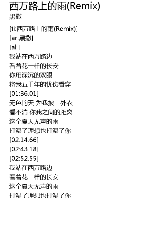 | [ti:西万路上的雨(Remix)] | |