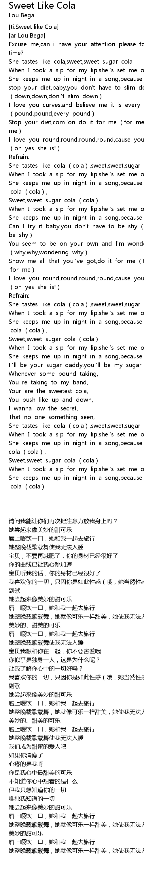 | [02:50.758] | She tastes like cola (cola),sweet,sweet,sugar cola (cola) |