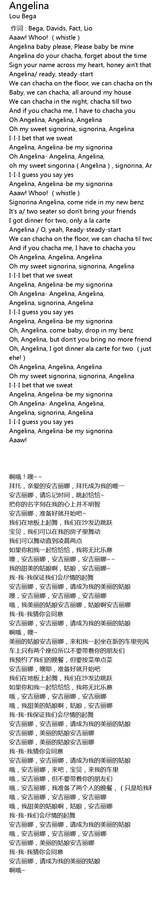 | [01:59.428] | Oh Angelina, Angelina, Angelina |