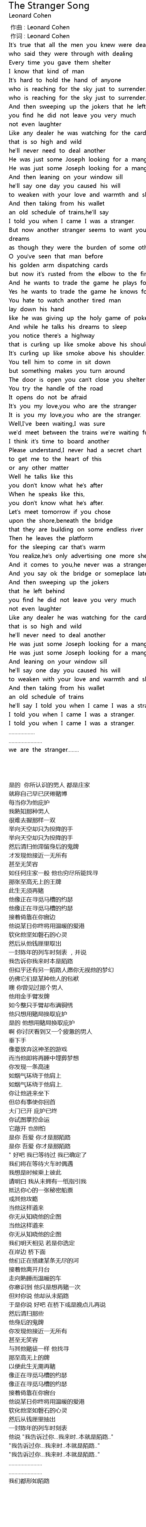 | [00:00.782] | zuò cí : Leonard Cohen |