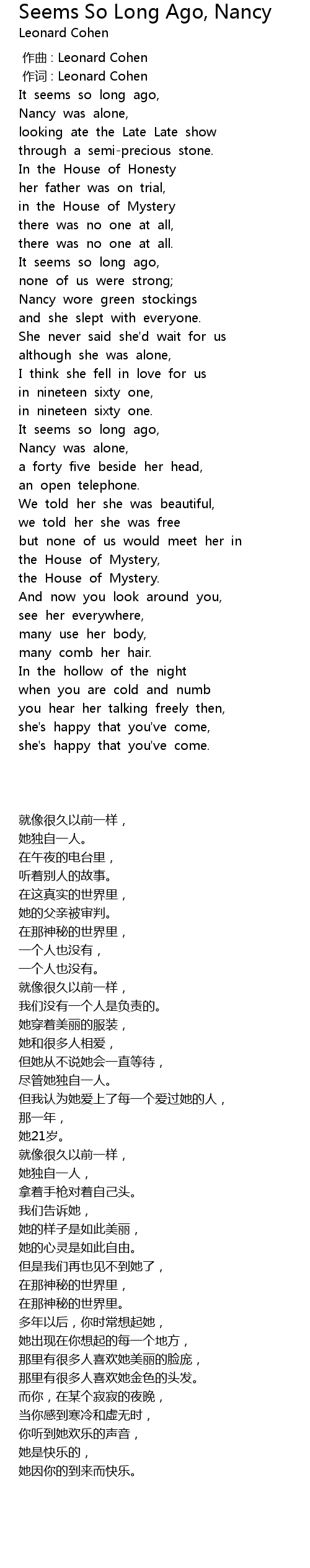 | [00:00.00] | 作曲 : Leonard Cohen |