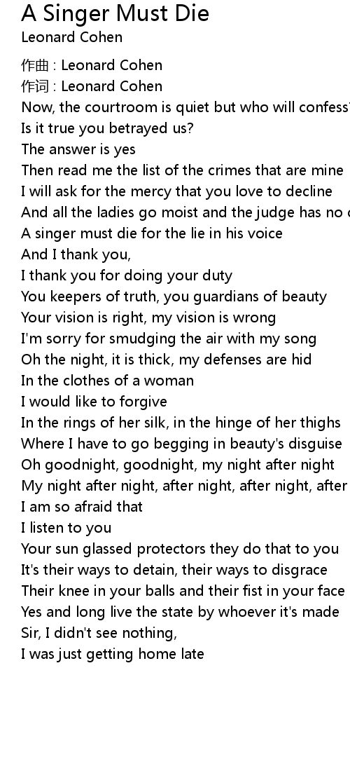 | 作词 : Leonard Cohen | |