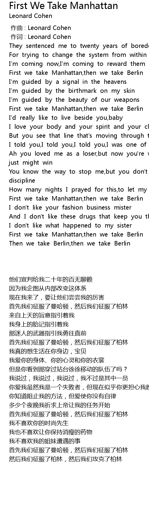 | [02:49.52] | First we take Manhattan,then we take Berlin |