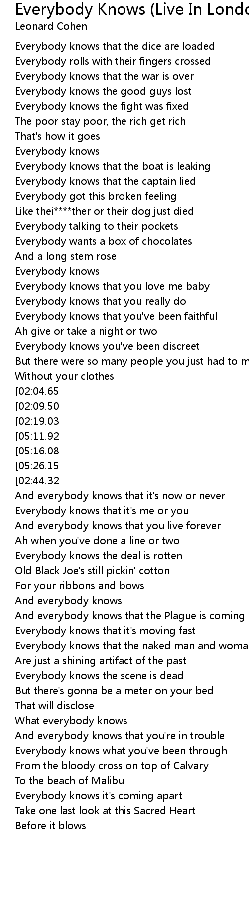 Everybody knows, everybody knows |
