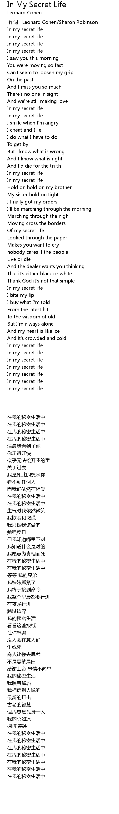 | [00:00.000] | 作词 : Leonard Cohen/Sharon Robinson |