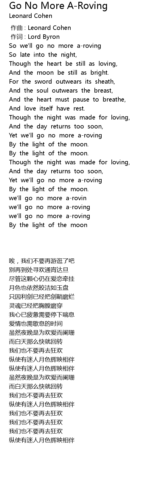 | [02:40.707] | Yet we'll go no more a-roving |