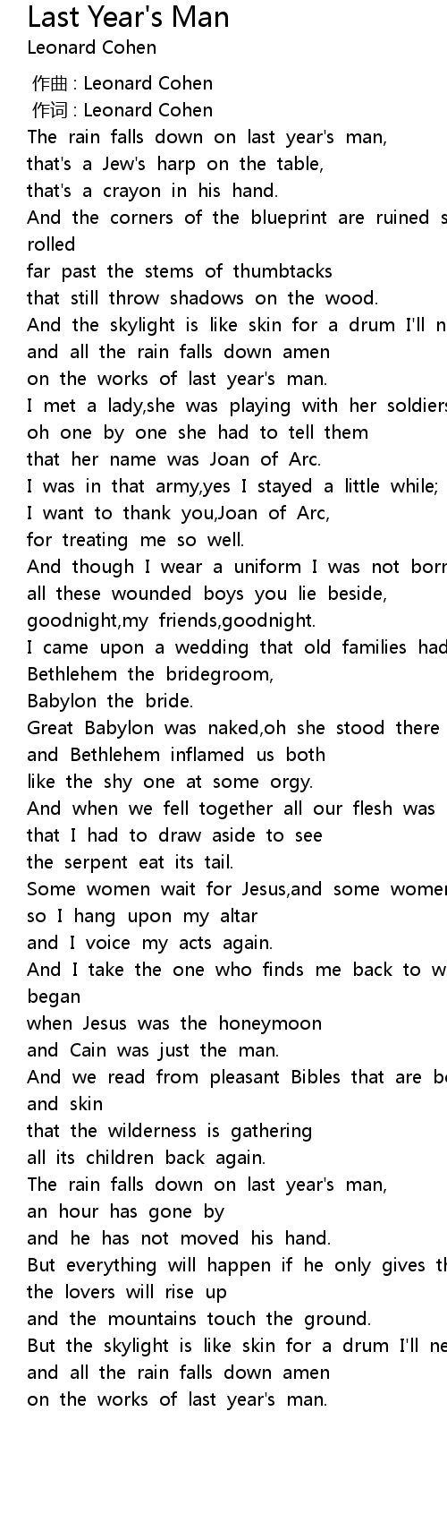 | [00:00.00] | 作曲 : Leonard Cohen |