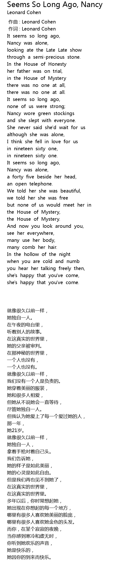 | [00:00.00] | 作曲 : Leonard Cohen |