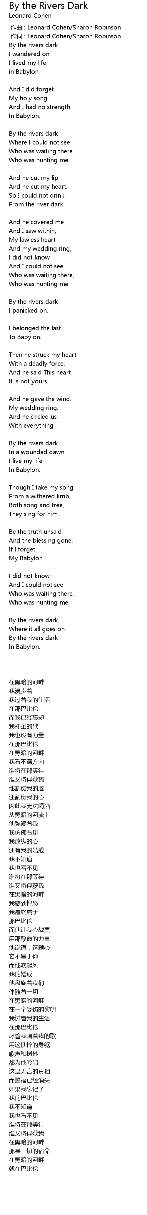 | [00:01.00] | 作词 : Leonard Cohen/Sharon Robinson |