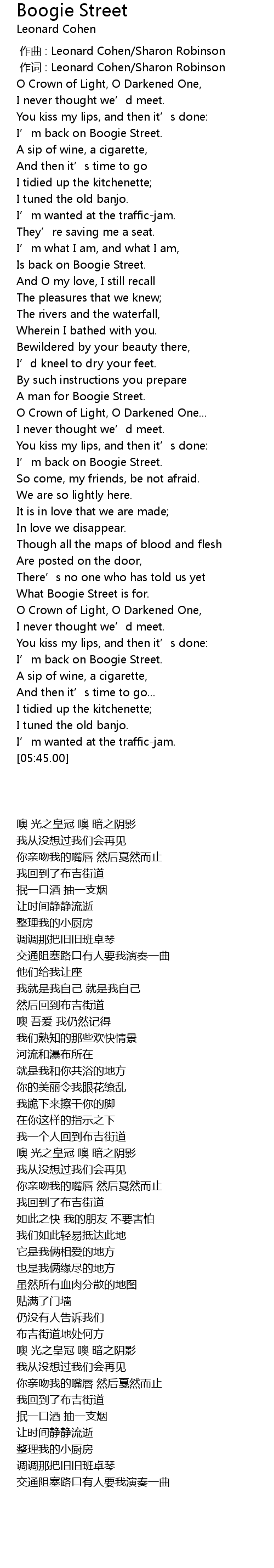 | [00:00.00] | zuò qǔ : Leonard Cohen Sharon Robinson |