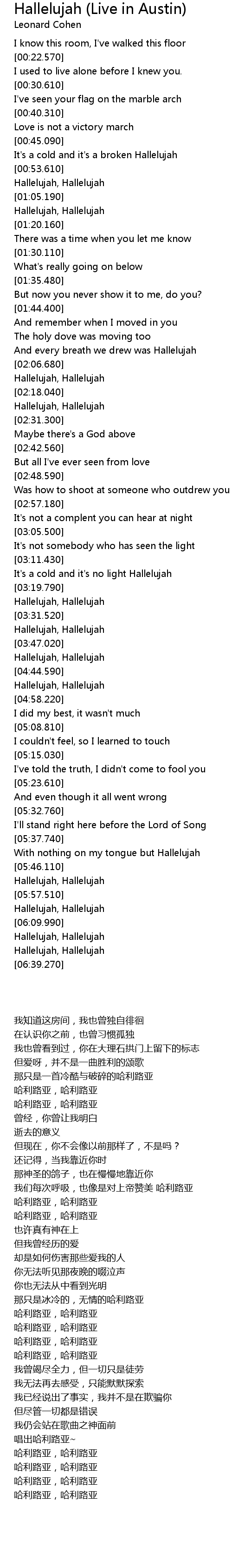 It's a cold and it's no light Hallelujah |