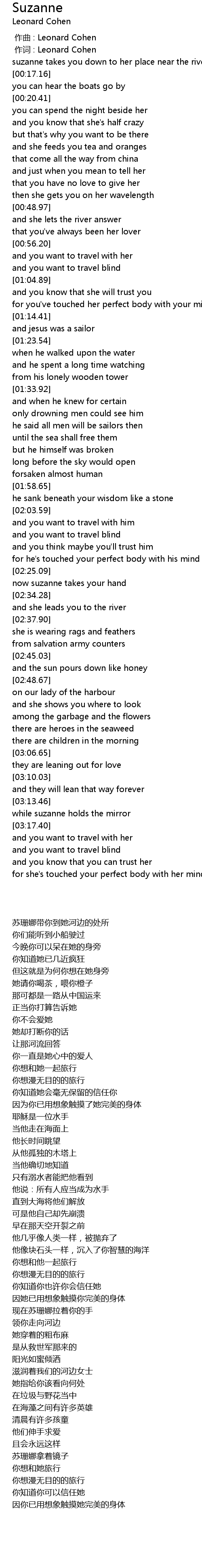 | [00:10.35] | suzanne takes you down to her place near the river |