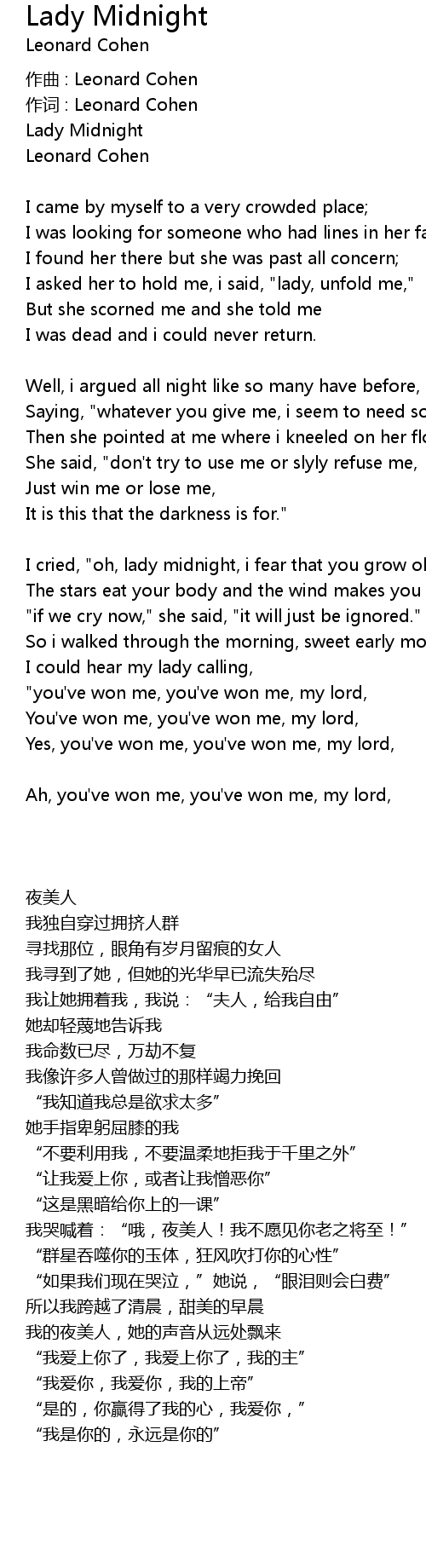 | Song | Lady Midnight |