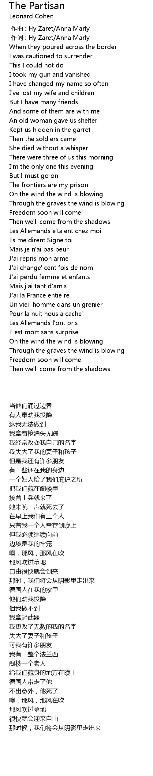 | Song | The Partisan |