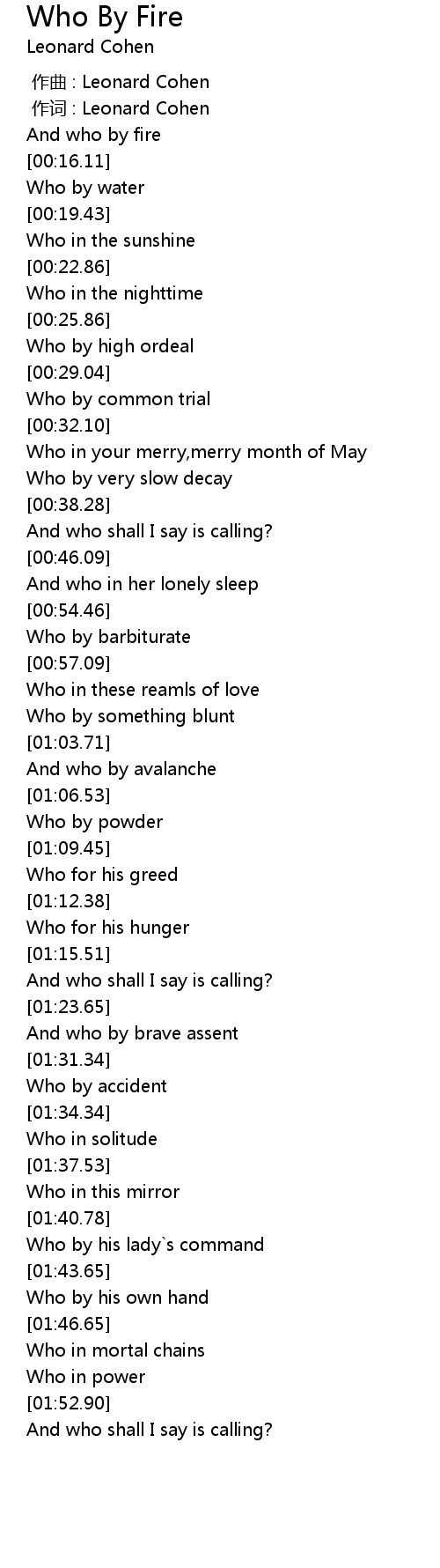 | [00:00.00] | 作曲 : Leonard Cohen |