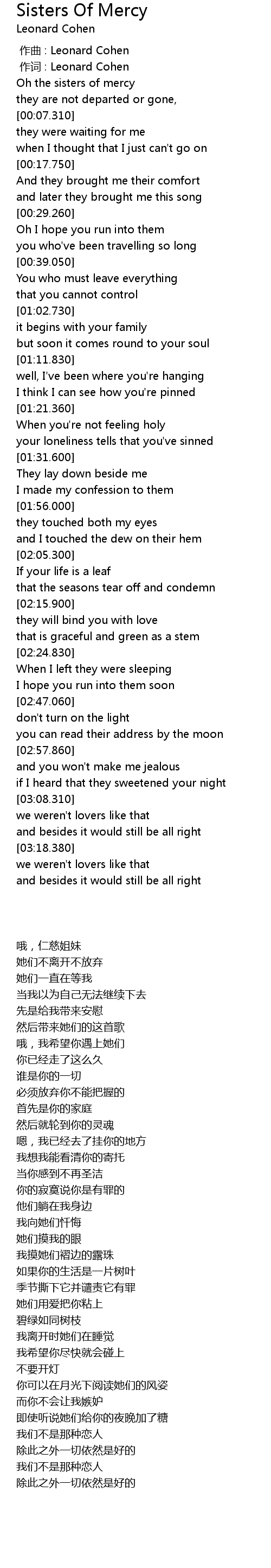 | [00:00.126] | zuò cí : Leonard Cohen |