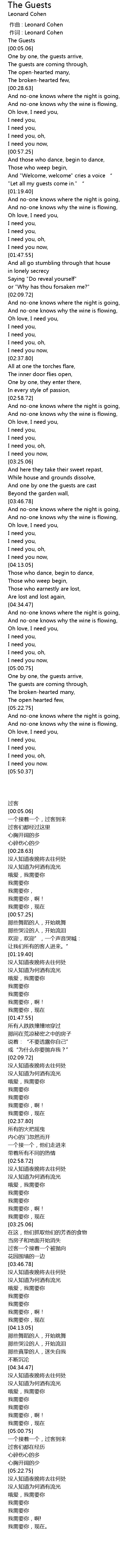 | [00:00.00] | 作曲 : Leonard Cohen |