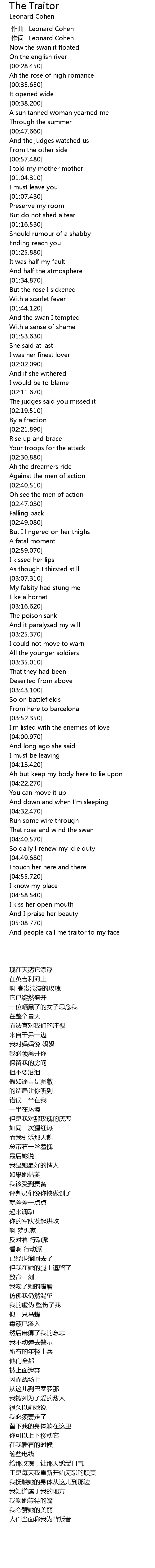 | [00:00.00] | 作曲 : Leonard Cohen |