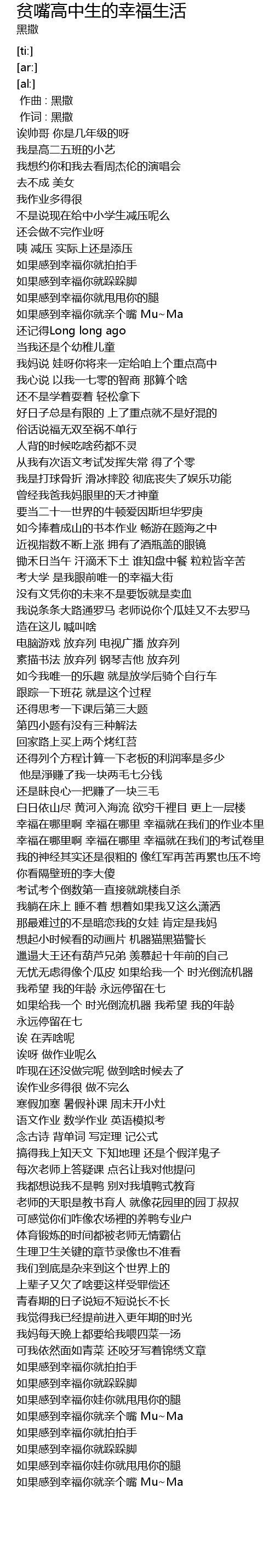 | [02:22.27] | 幸福在哪里啊 幸福在哪里 幸福就在我们的考试卷里 |