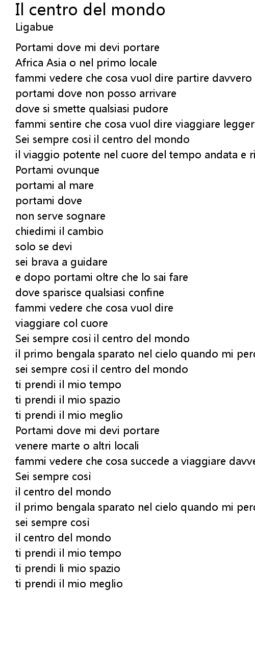 | sei sempre così il centro del mondo | |