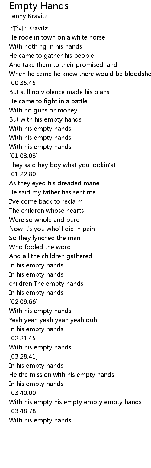 | [00:32.64] | When he came he knew there would be bloodshed |