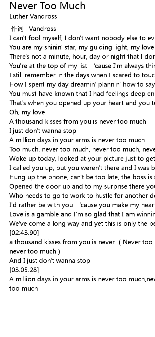 | [01:44.55] | Too much, never too much, never too much, never too much |