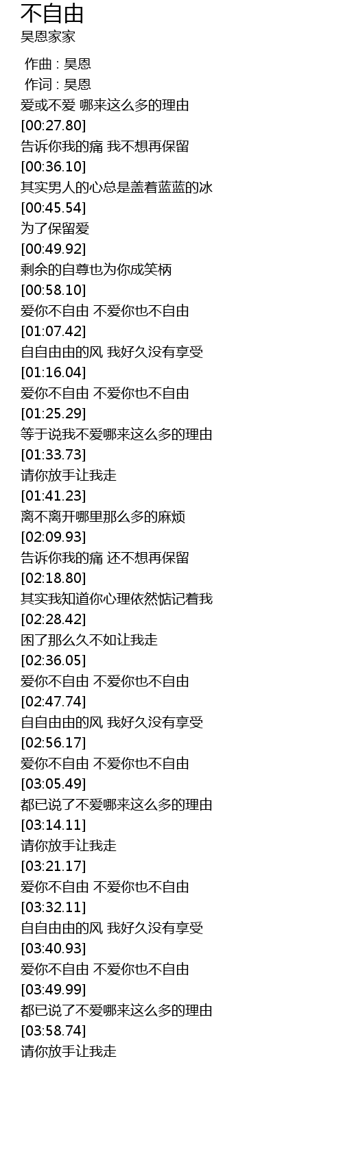 | [03:41.88] | 爱你不自由 不爱你也不自由 |