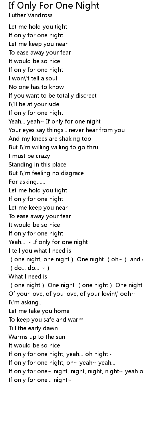| [03:53.80] | If only for one night, night, night, night yeah one night |