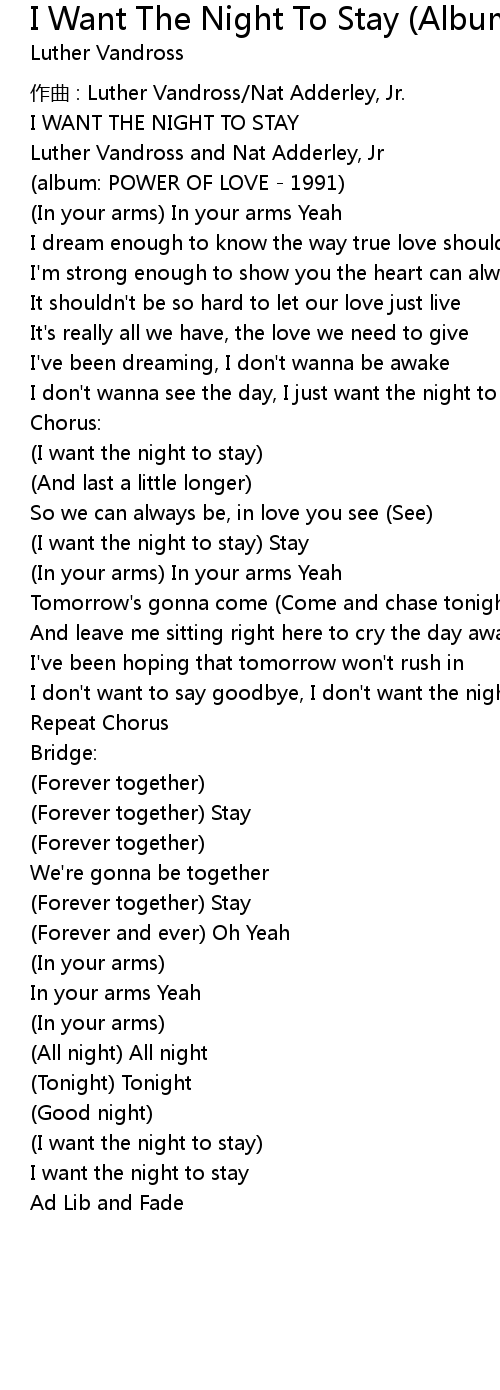 | I don' t want to say goodbye, I don' t want the night to end | |