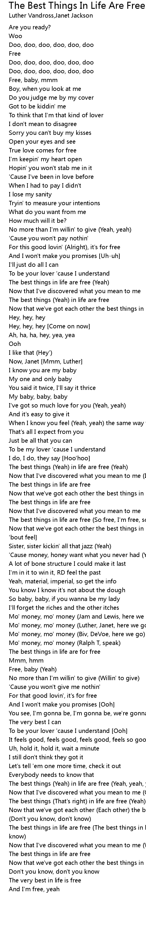 The best things (Yeah) in life are free (Yeah, yeah, yeah, yeah) |