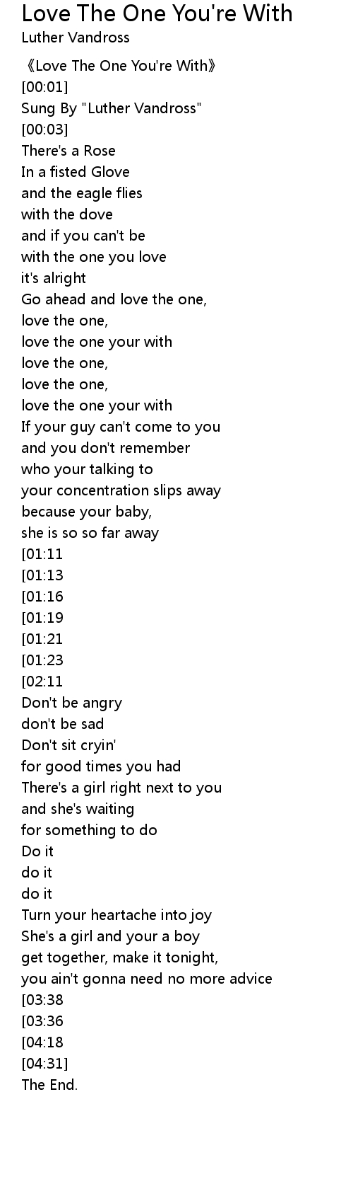 | [02:14][02:11][01:33][01:31][01:29][01:25] | love the one your with |