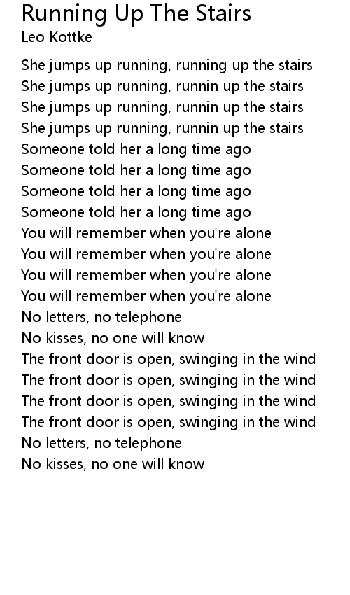 She jumps up running, running up the stairs |