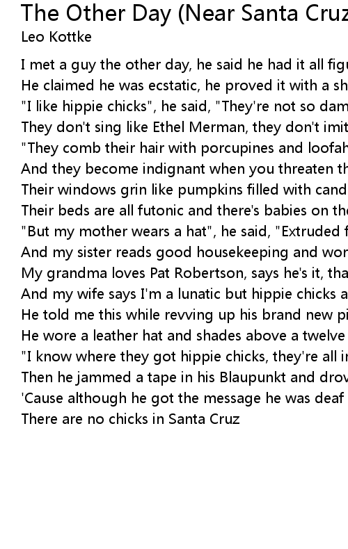 "I know where they got hippie chicks, they're all in Santa Cruz" |