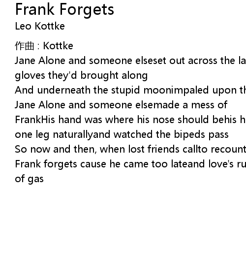 | Song | Frank Forgets |