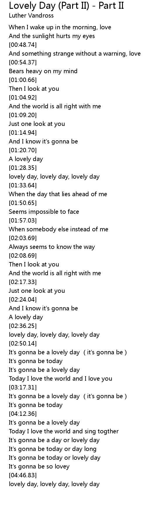 | [01:29.61] | lovely day, lovely day, lovely day |