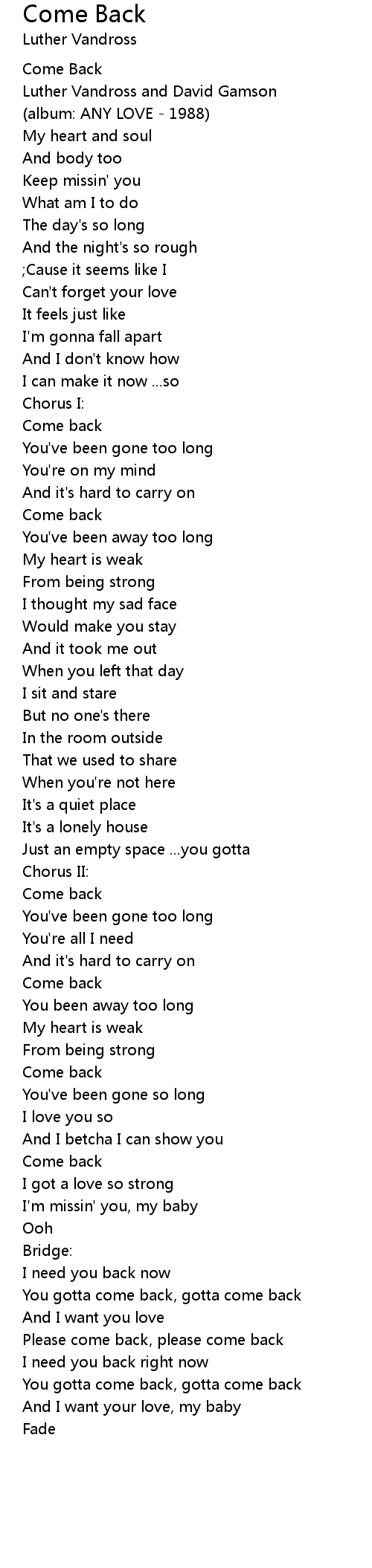 You gotta come back, gotta come back |