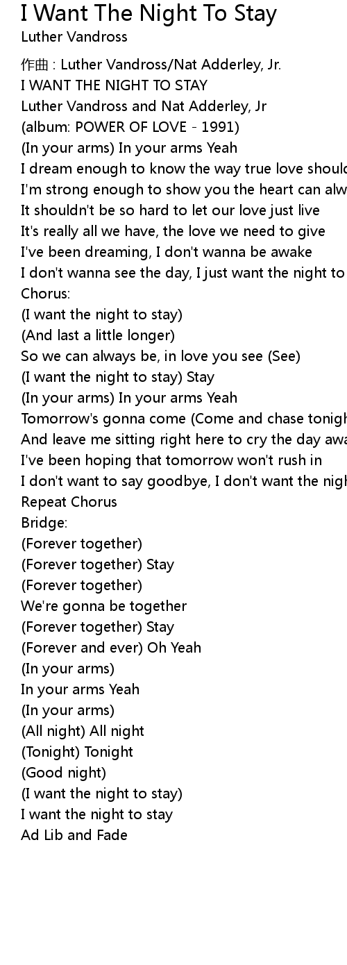 | I don' t want to say goodbye, I don' t want the night to end | |
