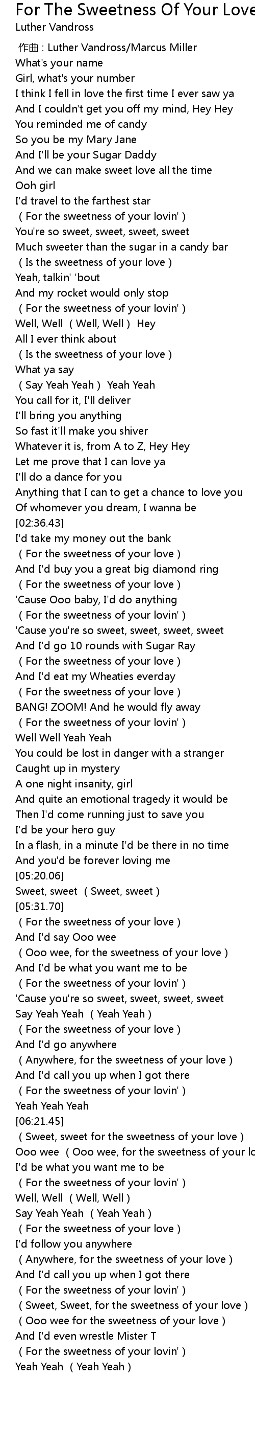 | [06:51.20] | (Sweet, Sweet, for the sweetness of your love) |