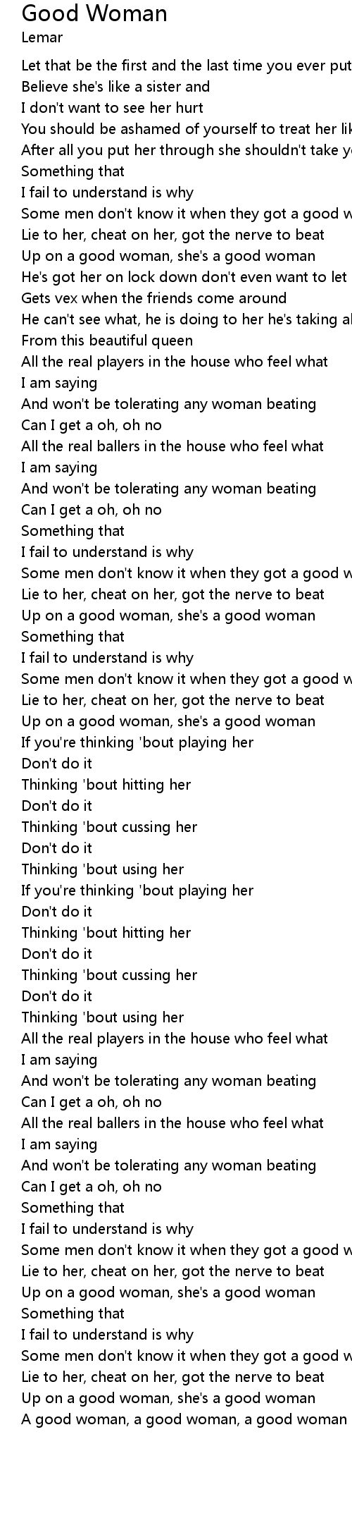 | Some men don't know it when they got a good woman | |