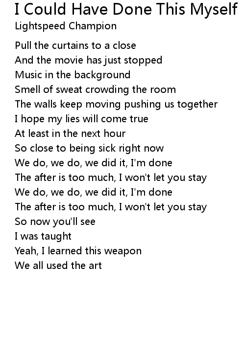 | Song | I Could Have Done This Myself |