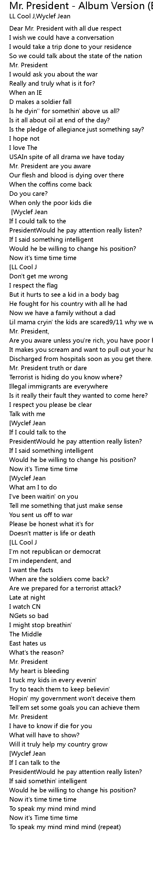 | For me to speak my mind mind mind[Bridge][Wyclef Jean] | |