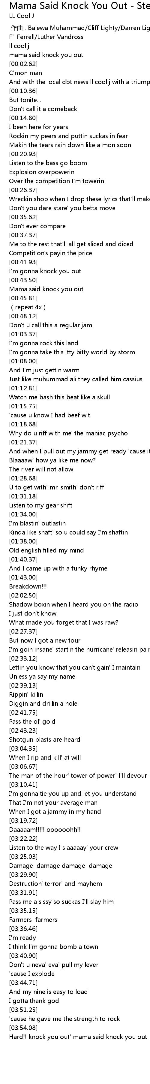 | [03:54.83] | Hard!! knock you out' mama said knock you out |