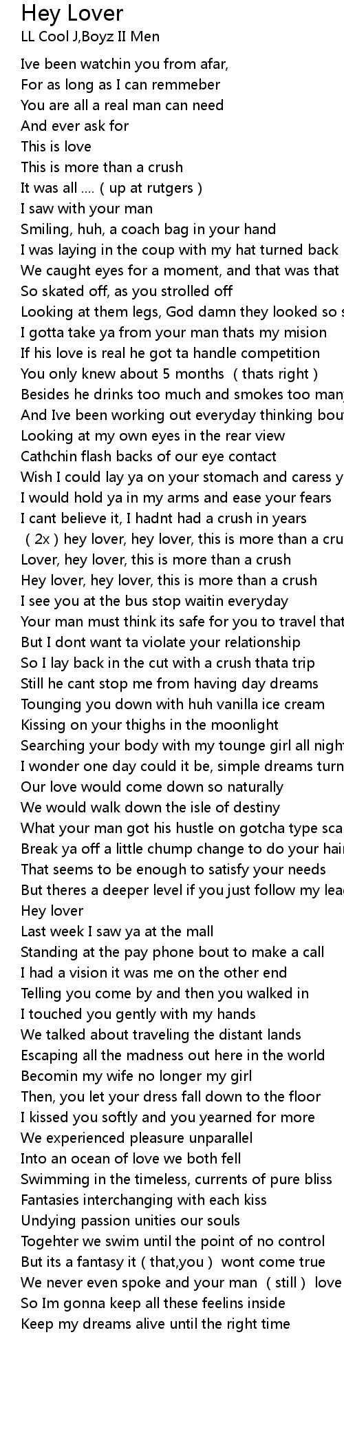 | [01:15.520] | (2x)hey lover, hey lover, this is more than a crush |