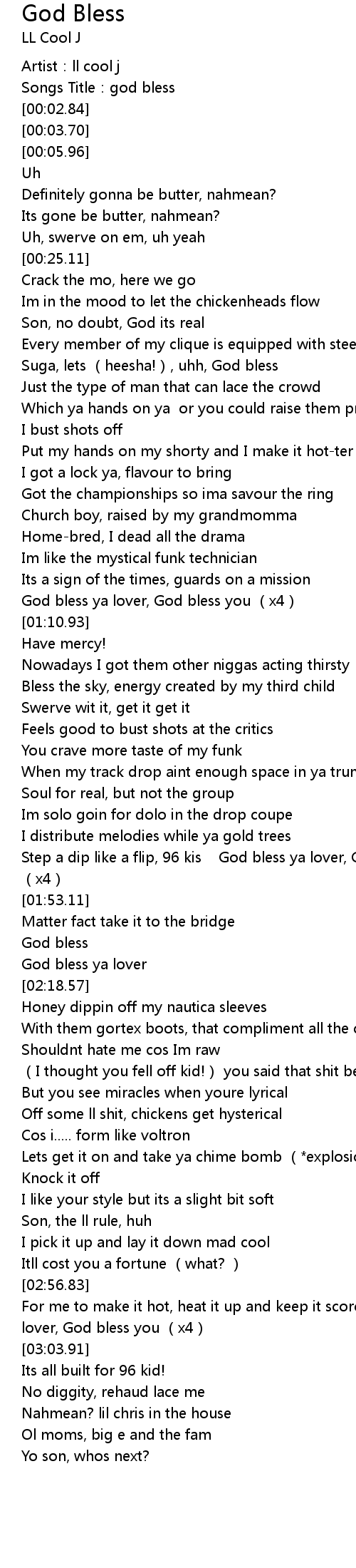 | [01:07.67] | God bless ya lover, God bless you x4 |