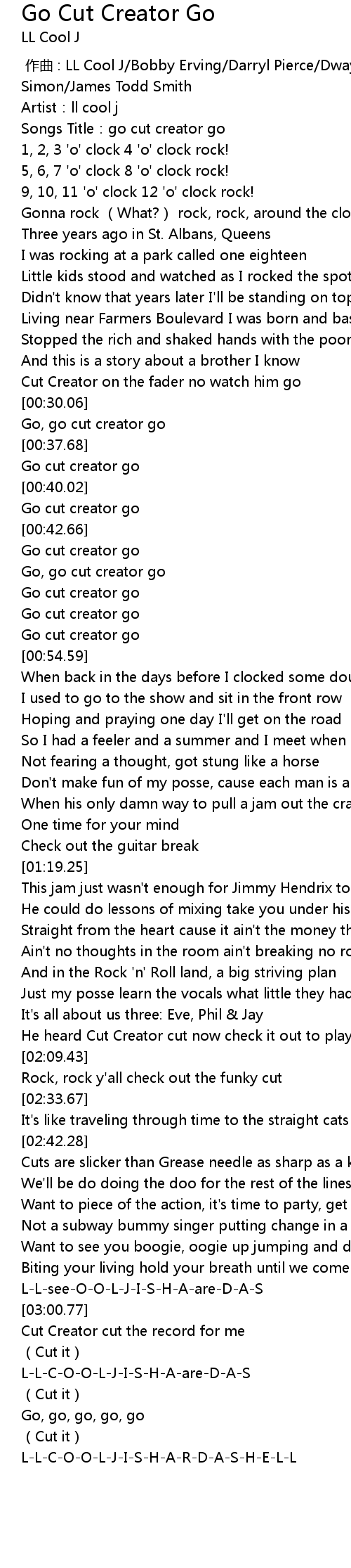 | [00:00.91] | Songs Title: go cut creator go |