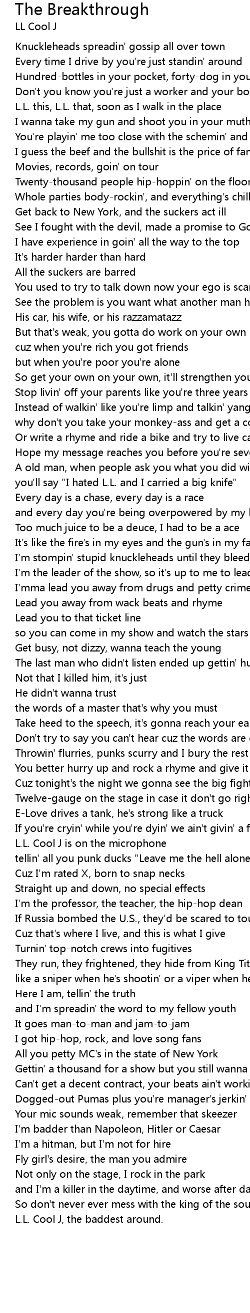 you'll say "I hated L.L. and I carried a big knife" |
