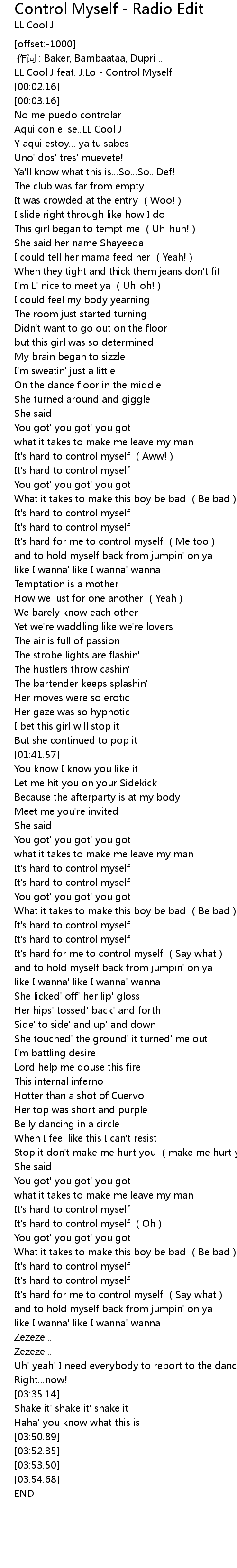 | [00:00.00] | LL Cool J feat. J.Lo - Control Myself |